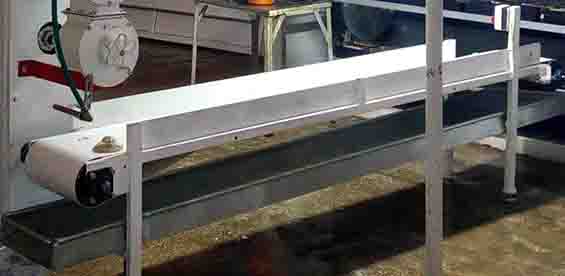 Транспортер ленточный к тестоделителю «Кузбасс 68-2М»: рабочая длина 3000 мм, ширина ленты 300 мм, привод цепной от вала головки тестоделителя.